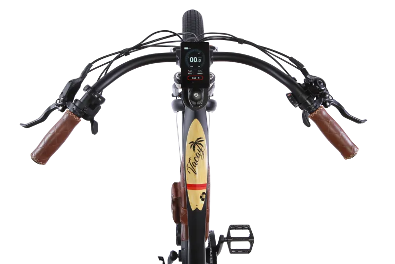 The ultimate retro cruiser! Lean back, relax and ride in style with a retro Californian style Beach Cruiser. Whether you want to cruise the cycleways or commute to work the Vacay vintage E-bike will ensure that you look stylish and relaxed. With plenty of power, a swept-back style, and a meticulous finish, the Vacay will be sure to turn heads. Equipped with a rear rack for small loads, mudguards to keep things clean, leather accessories for maximum comfort and style. The all-new mid-drive motor provides a riding sensation where the electrical assistance closely responds to the force you apply to the pedal just when you want it. Why wait..... book a test ride today!
