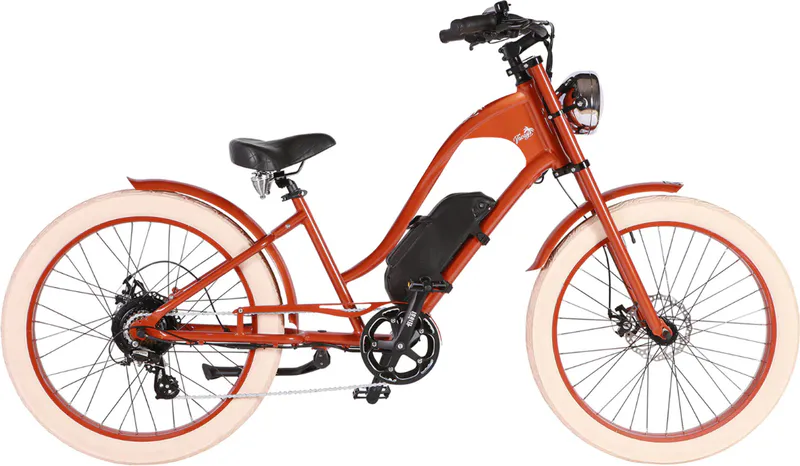 The ultimate retro cruiser! Lean back, relax and ride in style with a retro Californian style Beach Cruiser. Whether you want to cruise the cycleways or commute to work, the Vacay vintage E-bike will ensure that you look stylish and relaxed. With plenty of power, a swept-back style, and a meticulous finish, the Vacay will be sure to turn heads. Equipped with a rear rack for small loads, mudguards to keep things clean, leather accessories for maximum comfort and style. Why wait..... book a test ride today!