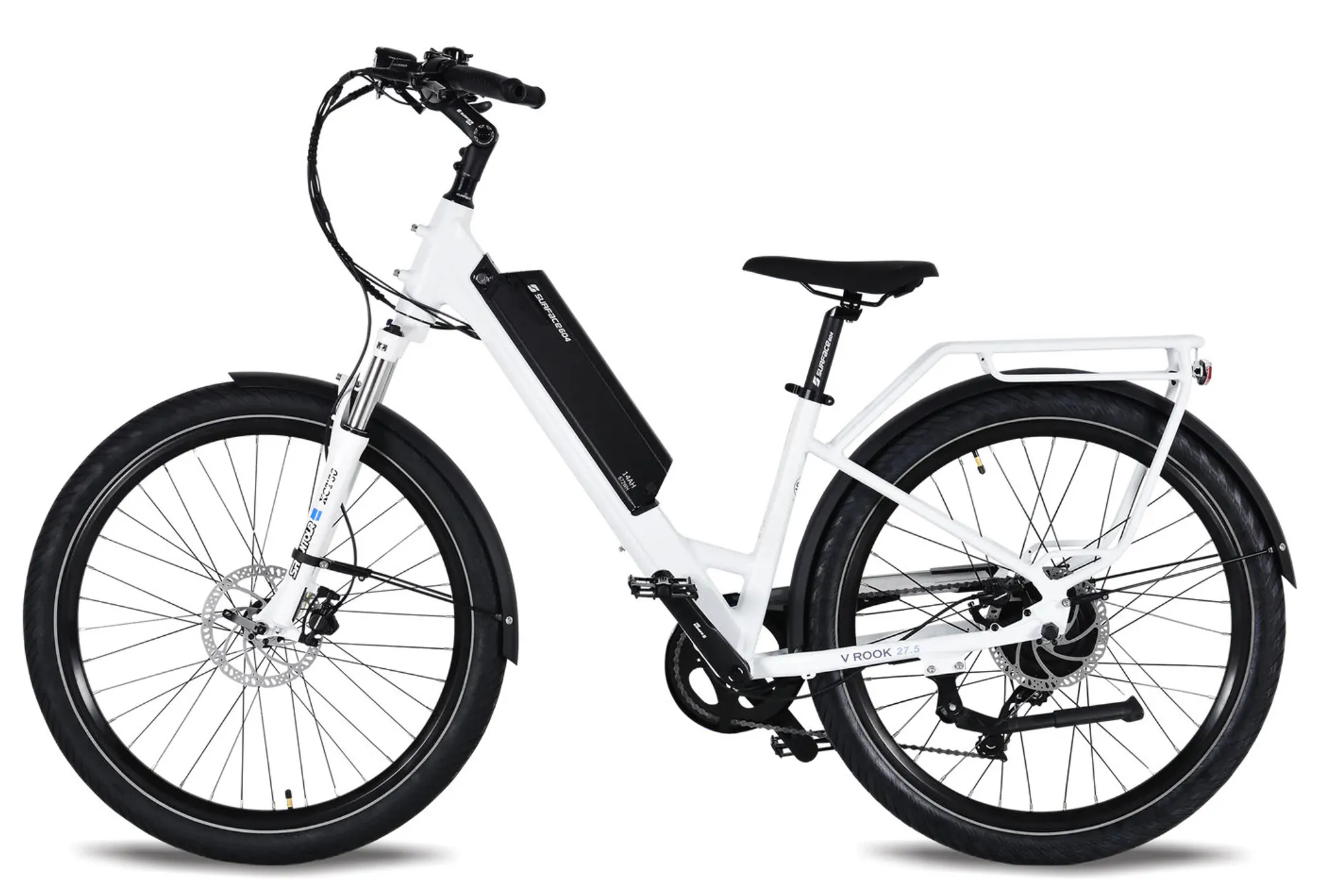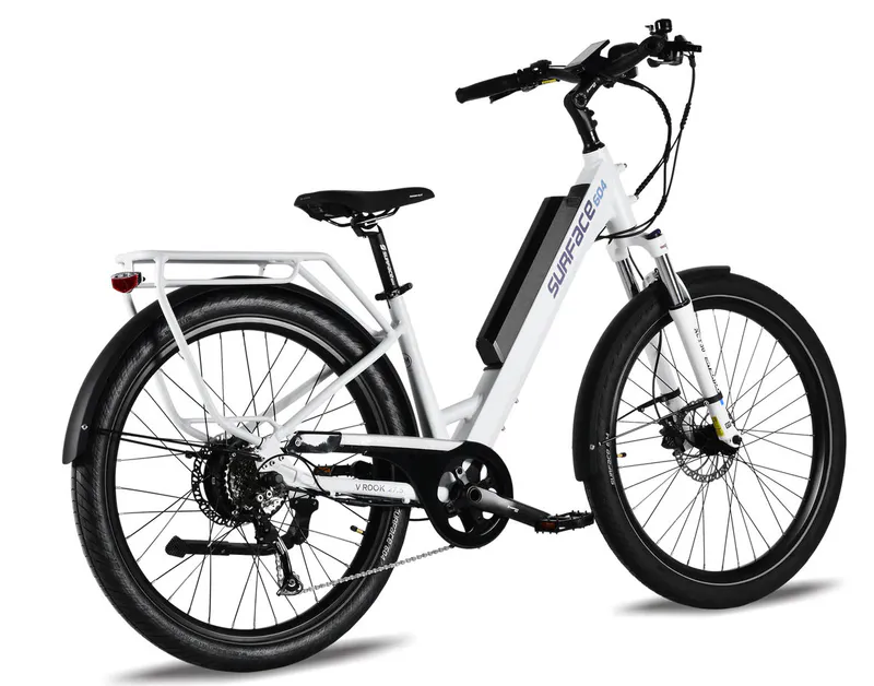 Introducing the Surface 604 V Rook. A feature-rich and approachable step-through city bike, available in two battery sizes and two colours.