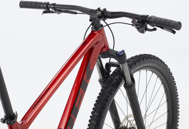Marlin 5 is a trail-worthy daily rider that's perfectly suited for everyday adventures, on and off the trail. It features a trail-savvy frame with a suspension fork, 9-speed Shimano CUES shifting and mounts for a rack and kickstand that make it an ideal choice for trail riders or anyone looking for a comfortable, stable commuter with the ruggedness of a real mountain bike.